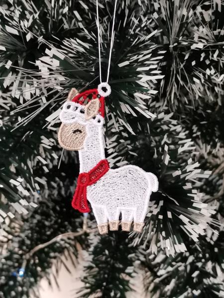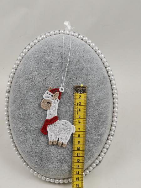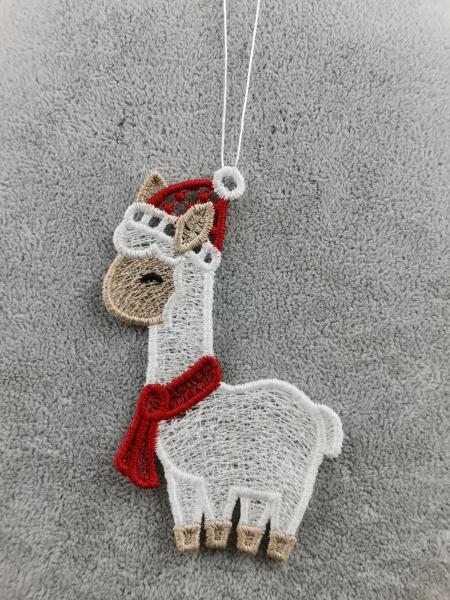 Lace Produkte werden mit einer Stickmaschine und Stickgarn auf wasserlöslichem Vlies gestickt. Nach dem Stickvorgang wird das Vlies ausgewaschen, sodass letztendlich nur die Stickerei übrig bleibt. Nach dem Trocknungsvorgang wird noch das Band zum aufhängen befestigt.
