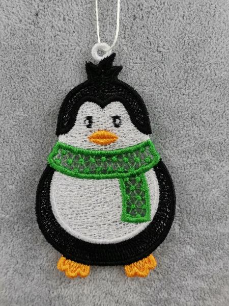 Lace Produkte werden mit einer Stickmaschine und Stickgarn auf wasserlöslichem Vlies gestickt. Nach dem Stickvorgang wird das Vlies ausgewaschen, sodass letztendlich nur die Stickerei übrig bleibt. Nach dem Trocknungsvorgang wird noch das Band zum aufhängen befestigt.