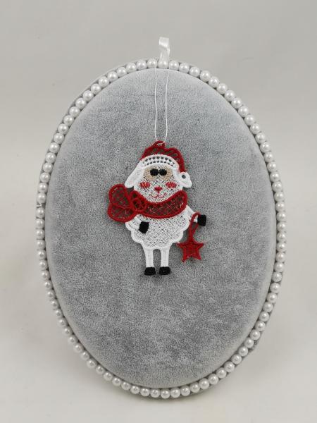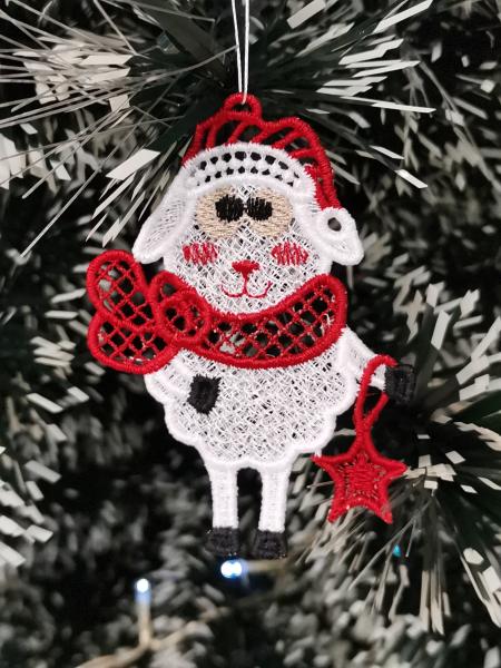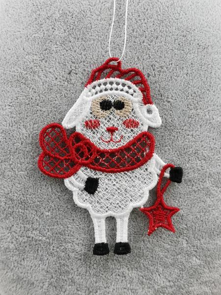 Lace Produkte werden mit einer Stickmaschine und Stickgarn auf wasserlöslichem Vlies gestickt. Nach dem Stickvorgang wird das Vlies ausgewaschen, sodass letztendlich nur die Stickerei übrig bleibt. Nach dem Trocknungsvorgang wird noch das Band zum aufhängen befestigt.