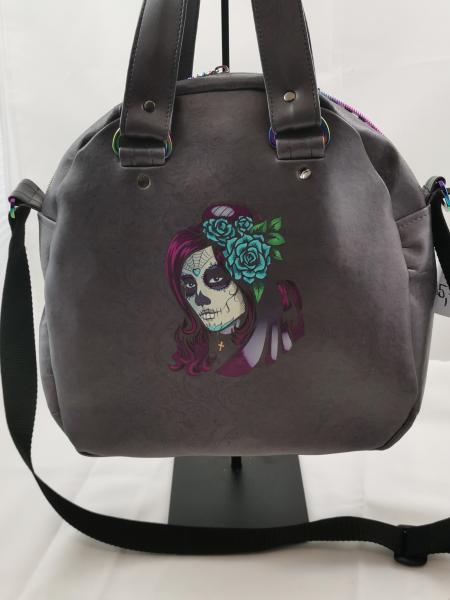 Material: Kunstleder, Baumwolle (Innen), Gurtband, Metalllabel, Nieten