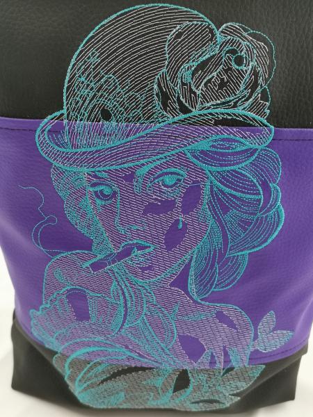 Material: Kunstleder, Baumwolle (Innen), Gurtband, Stickgarn