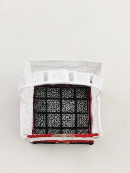 Lace Produkte werden mit einer Stickmaschine und Stickgarn auf wasserlöslichem Vlies gestickt. Nach dem Stickvorgang wird das Vlies ausgewaschen, sodass letztendlich nur die Stickerei übrig bleibt.