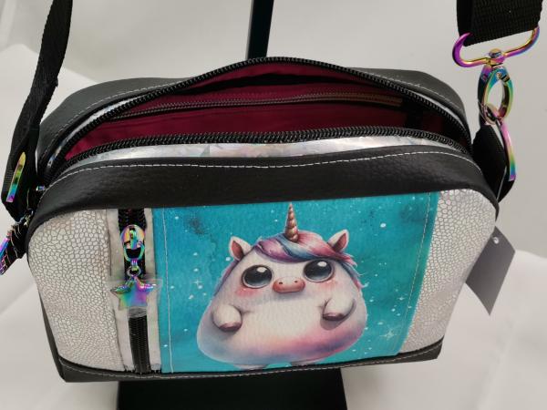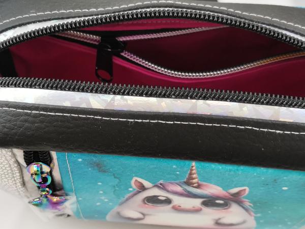 Material: Jersey (Glitzer außen), Kunstleder (Panel,Boden), Baumwolle (Innen)