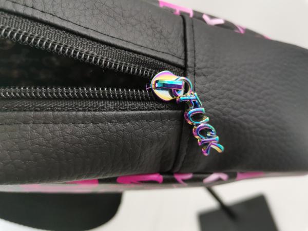Die Tasche ist NICHT waschbar. Bei Verunreinigung bitte mit einem feuchten Tuch abwischen.