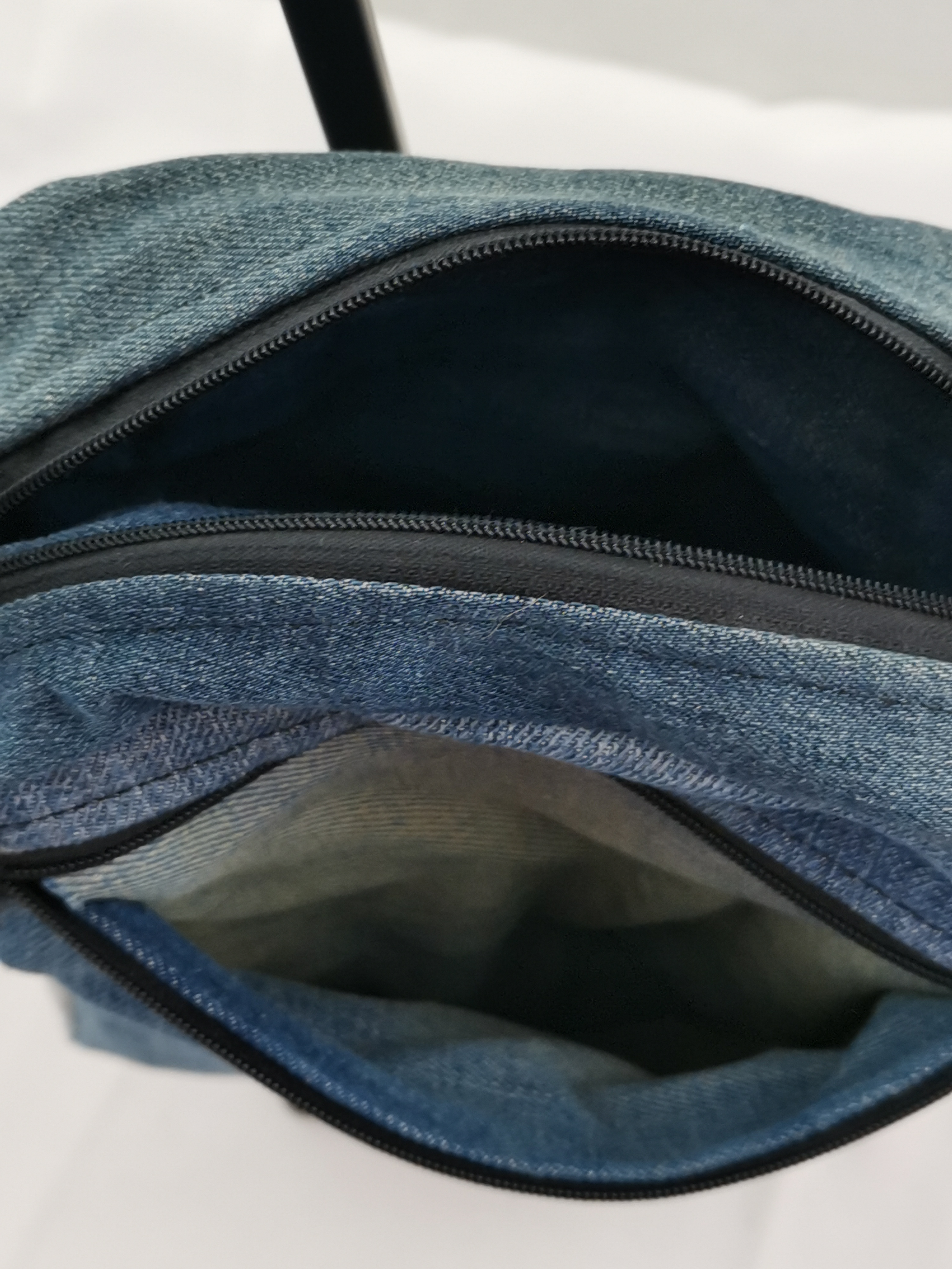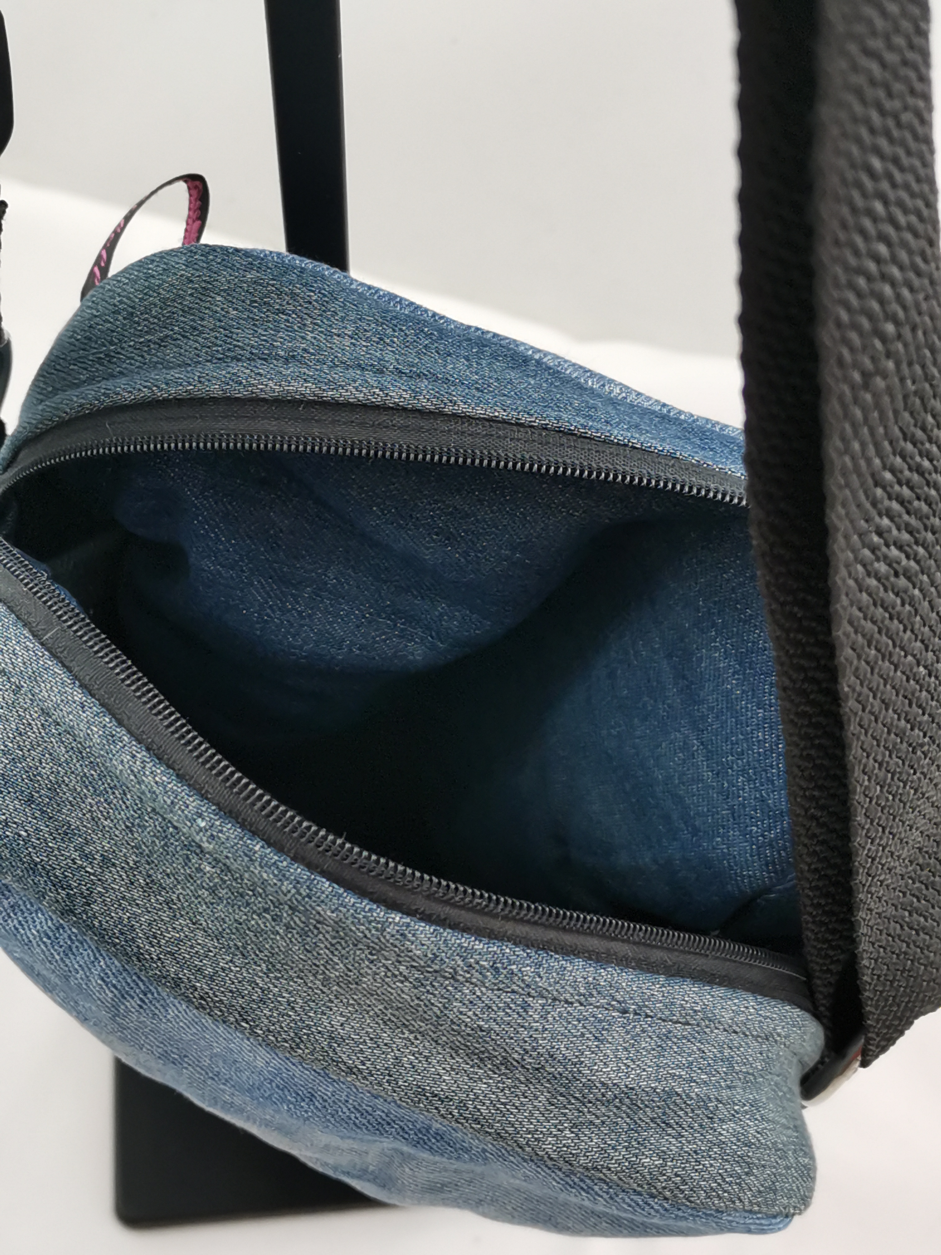 Daher wurden für diese Tasche keinen neuen Rohstoffe verwendet, sondern alten Jeans ein zweites Leben eingehaucht.