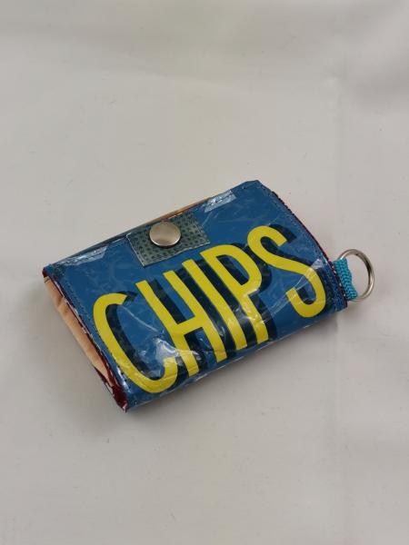 Diese kleine Geldbörse besteht aus einer alten Chipstüte. Zur Stabilisierung wurde diese mit Laminierfolie verstärkt.